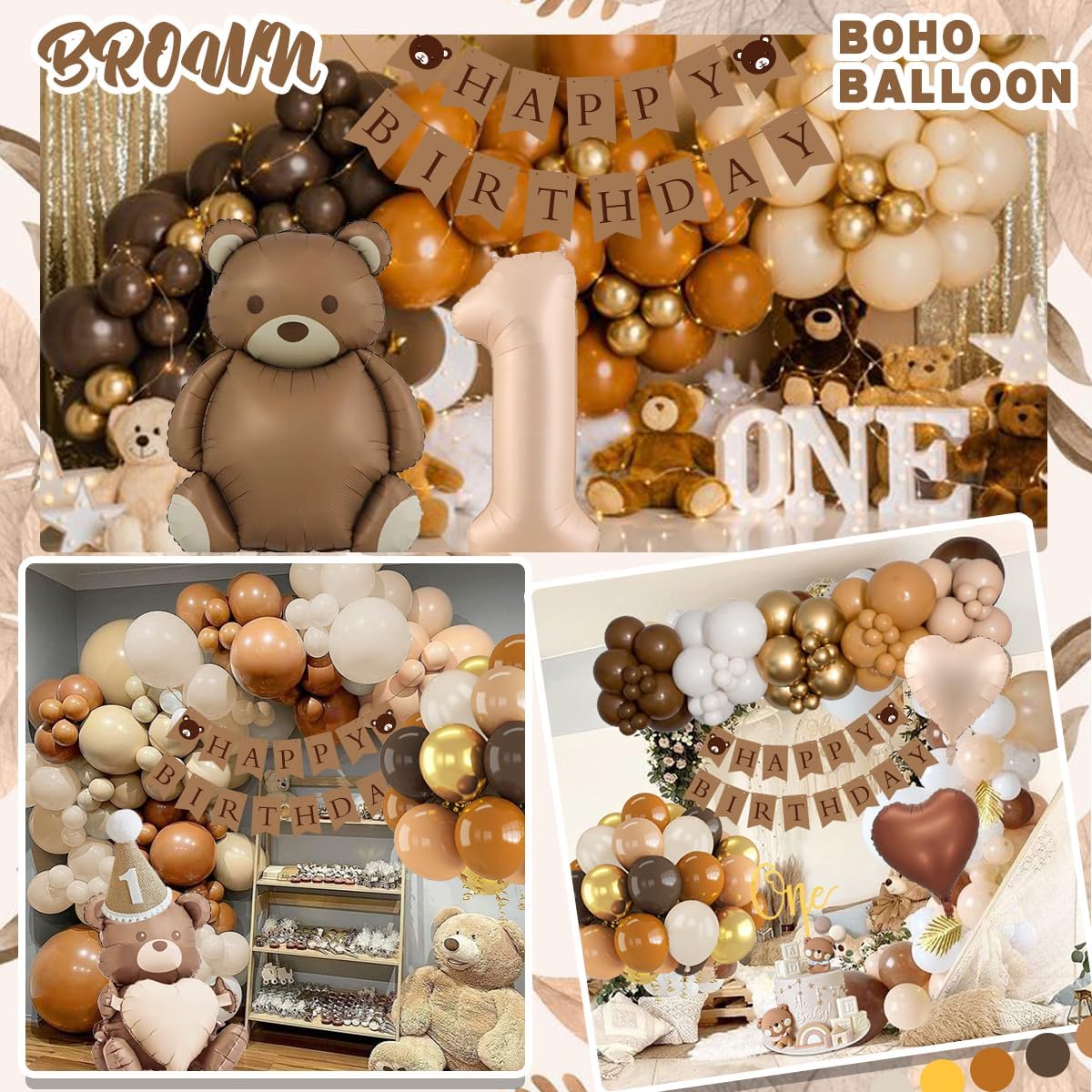 • Complete Birthday Decoration Set: This inclusive package caters to both boys and girls, providing all necessary elements for a memorable 1st birthday celebration. From Boho brown balloons to matte bear foil balloons, it covers every aspect of decoration, ensuring a cohesive and delightful ambiance.