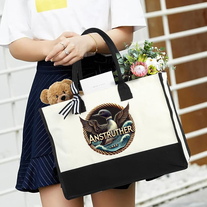 Introducing our exclusive Canvas Tote Bag, featuring a stunning loon design inspired by the peaceful waters of The Lake. 🦆✨