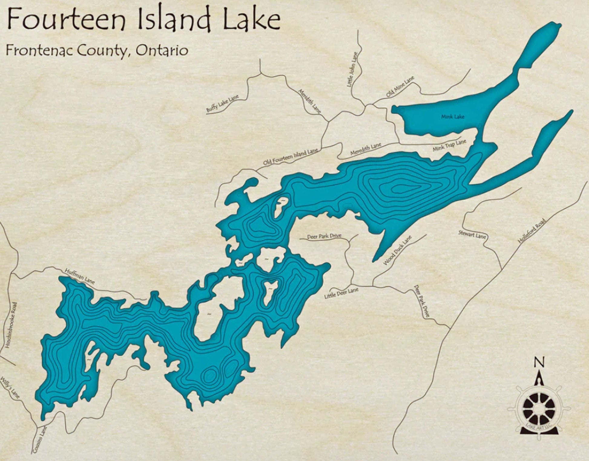 Fourteen Island Lake Map Print