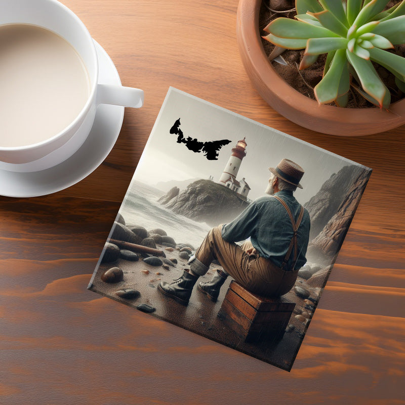 Bring the charm of maritime life into your home with our beautifully designed 4” x 4” coaster featuring a peaceful scene of a retired fisherman sitting on the wharf. Perfect for lovers of the sea and those who appreciate the art of relaxation, this coaster is a delightful addition to your decor while protecting your surfaces from spills and heat.