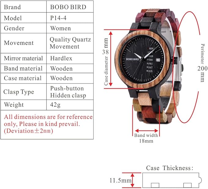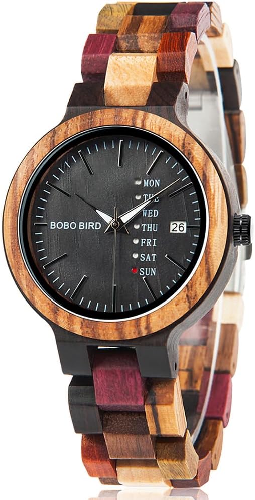 • Fashion analogue quartz women watches wood watch with large face dial, calendar and week display, easy to read time, convenient for daily use.
